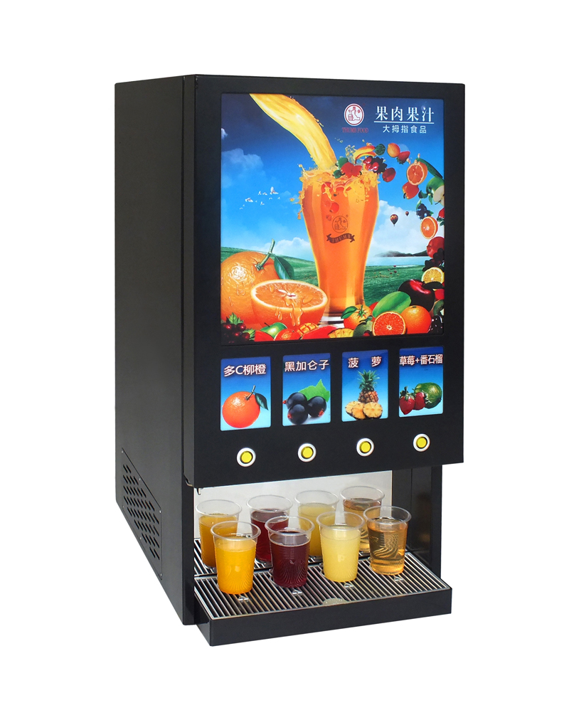 • 通过电脑精控和简易液晶显示,诱人的机器性价比帮助你快速跨入果汁致富行业! 拥有单品中或多品种饮料同时制作能力,客人根据喜好,将浓缩果汁按照不同的配比与水自由冲调出可